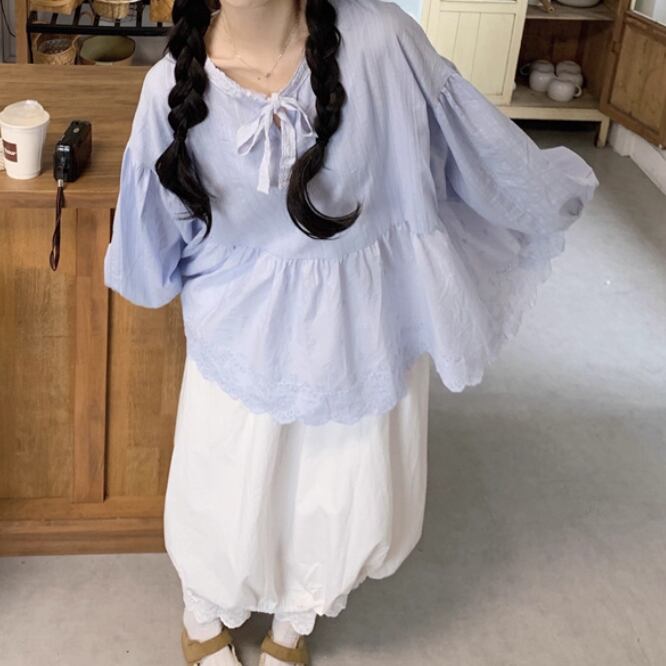 ストライプボタンブラウス ・6246