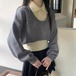 【2点セット】レースネックトップス+サイドリボンベスト ・4338