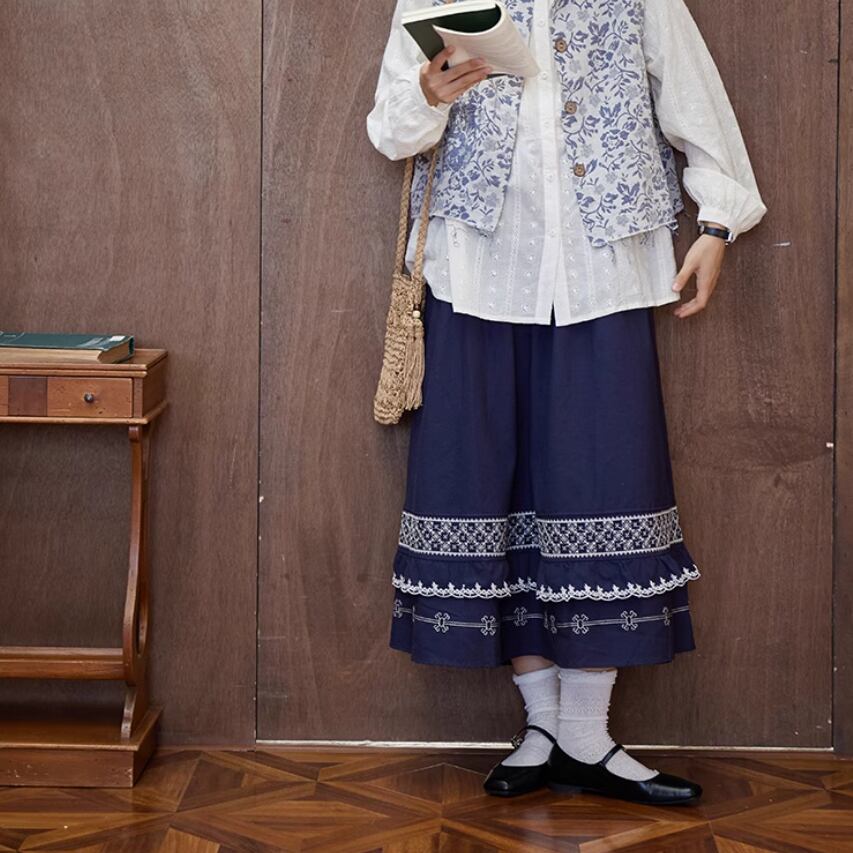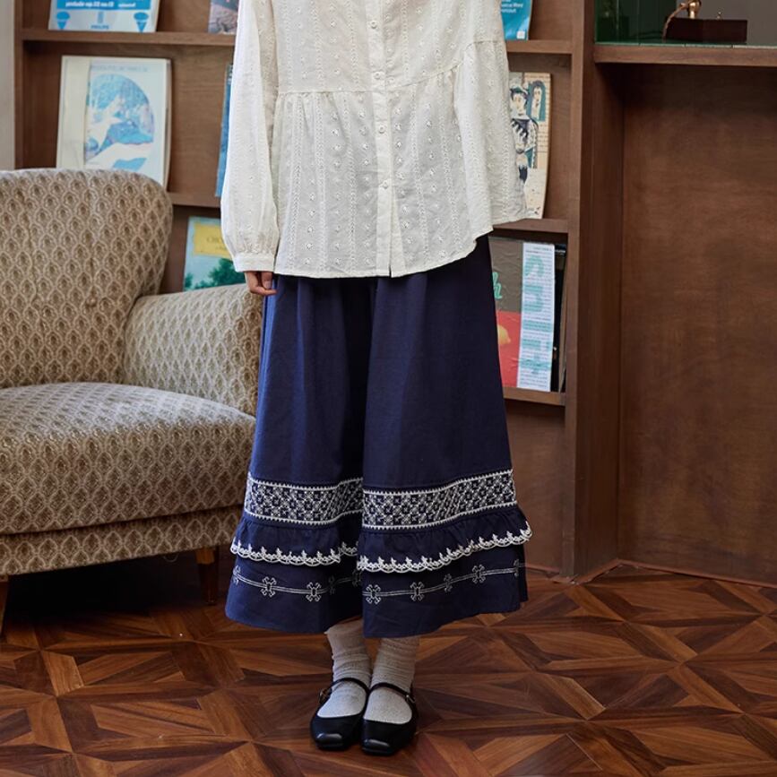 3色/裾レースレトロフレアスカート ・8942