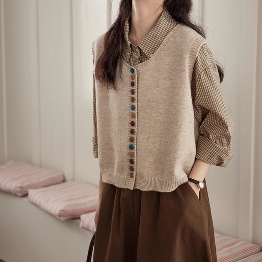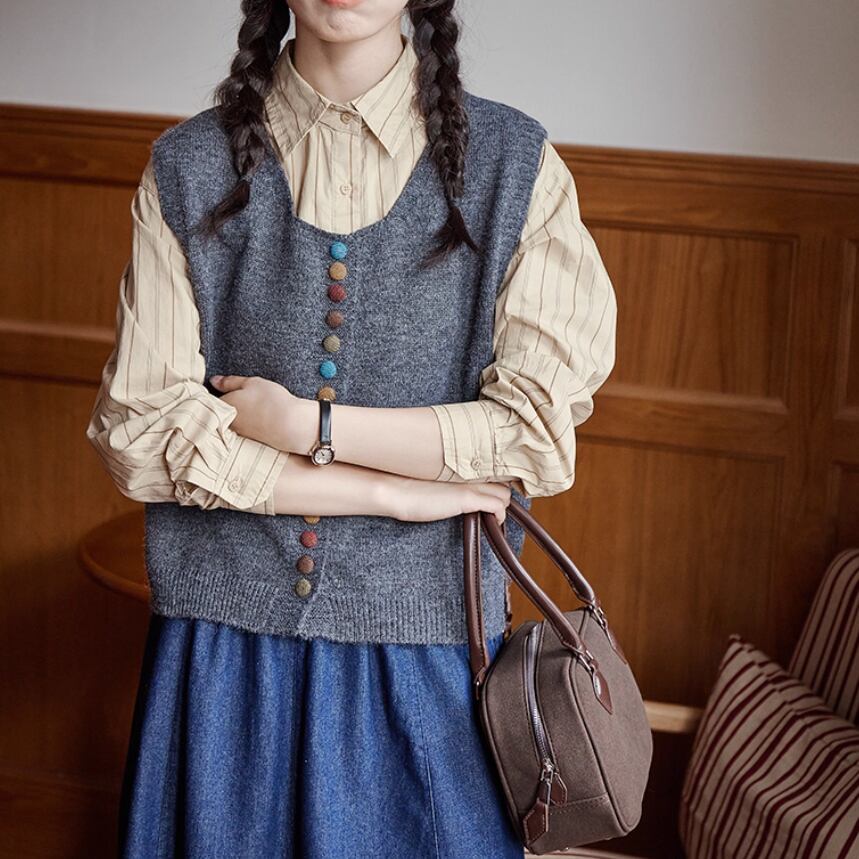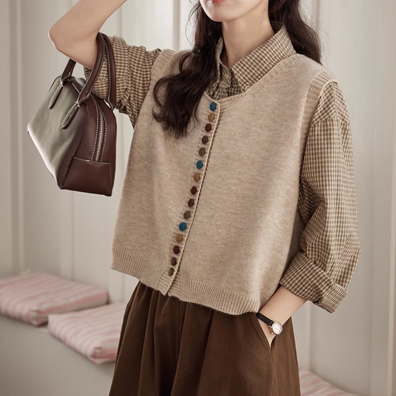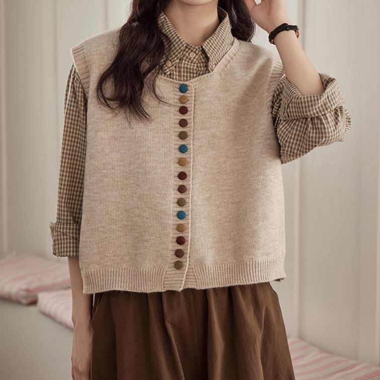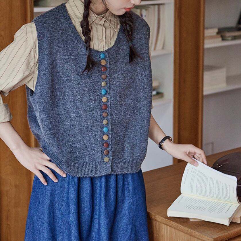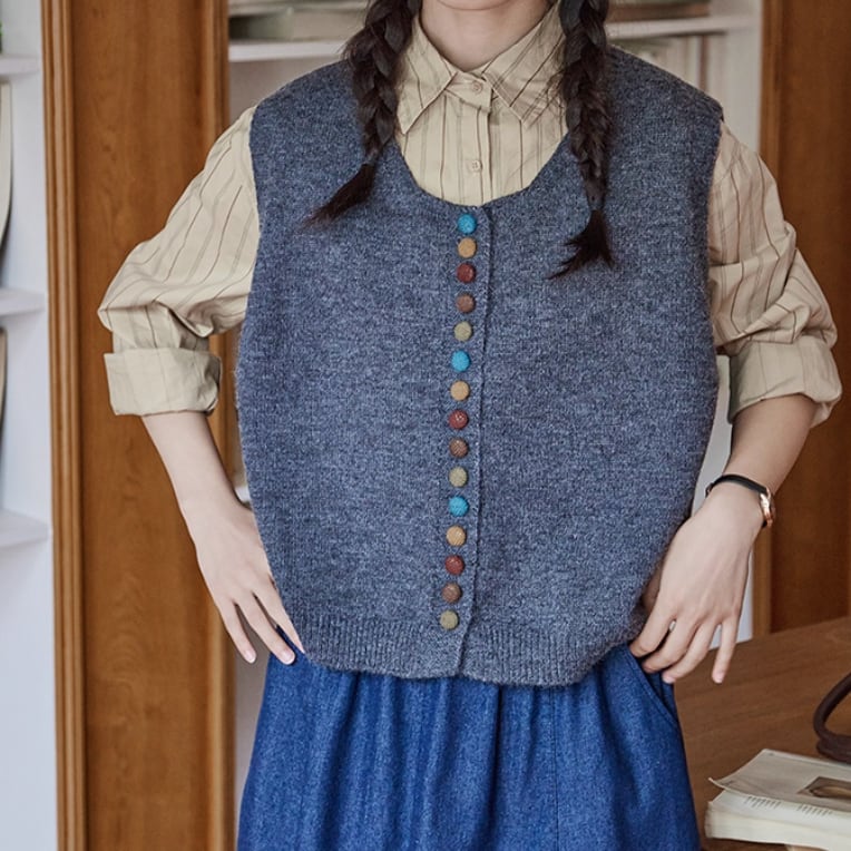 ノーカラーニットベスト ・8346