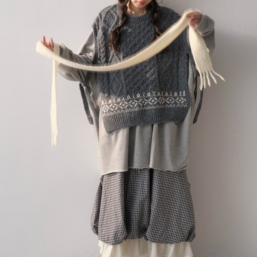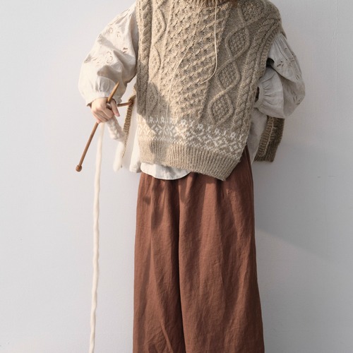 ノーカラーニットベスト ・8346