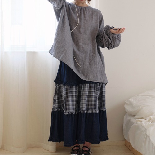 ラウンドネックレトロチェック柄ブラウス ・8142