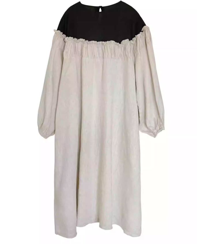 レース貼りコーデュロイロングワンピ ・6410