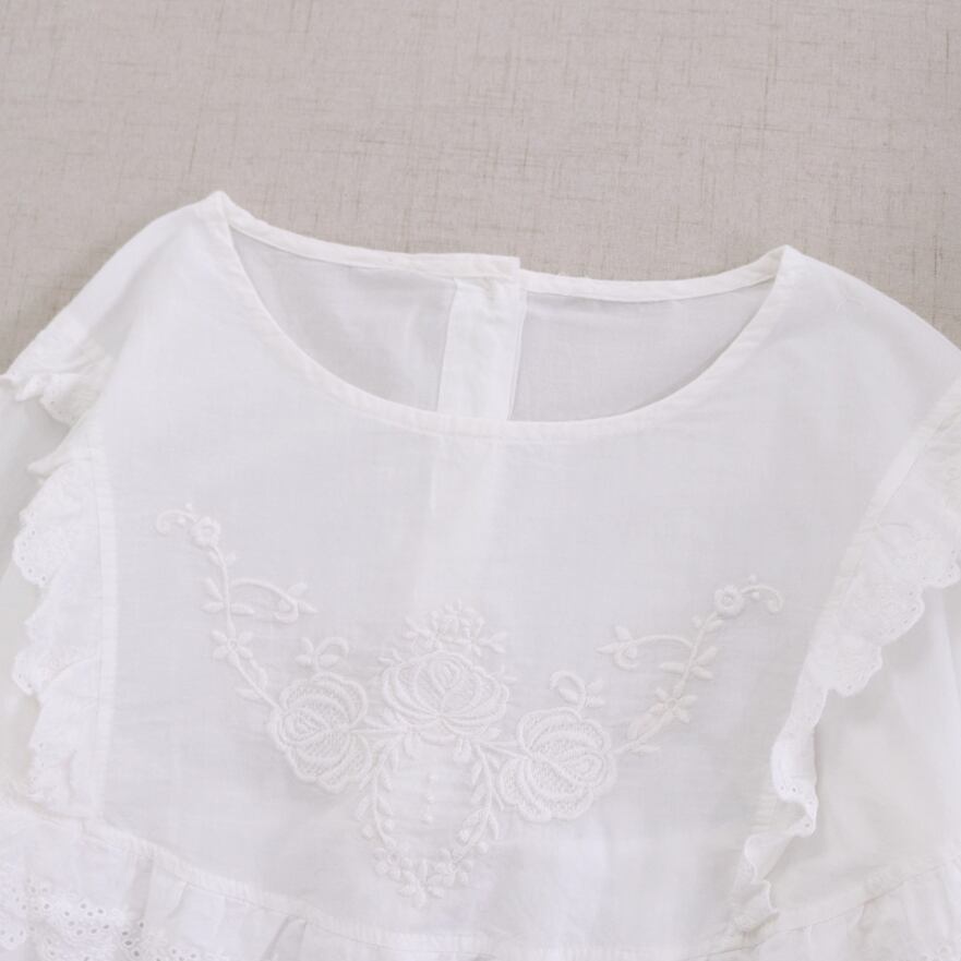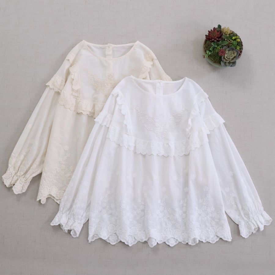 ラウンドネックレトロチェック柄ブラウス ・8142