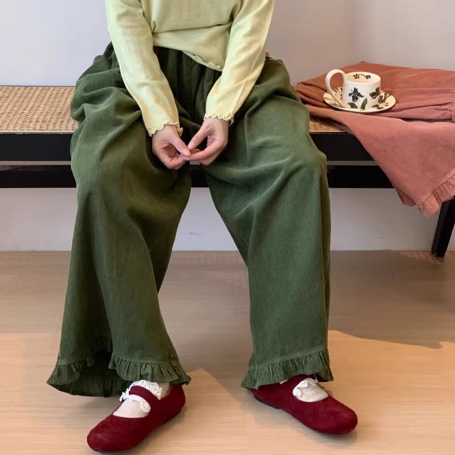 2色/サイドレース貼りコーデュロイパンツ ・8519