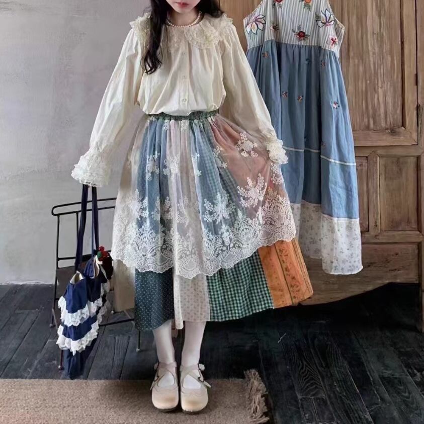 ラウンドネックレトロチェック柄ブラウス ・8142