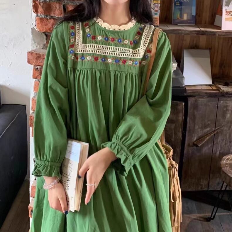 レース貼りコーデュロイロングワンピ ・6410