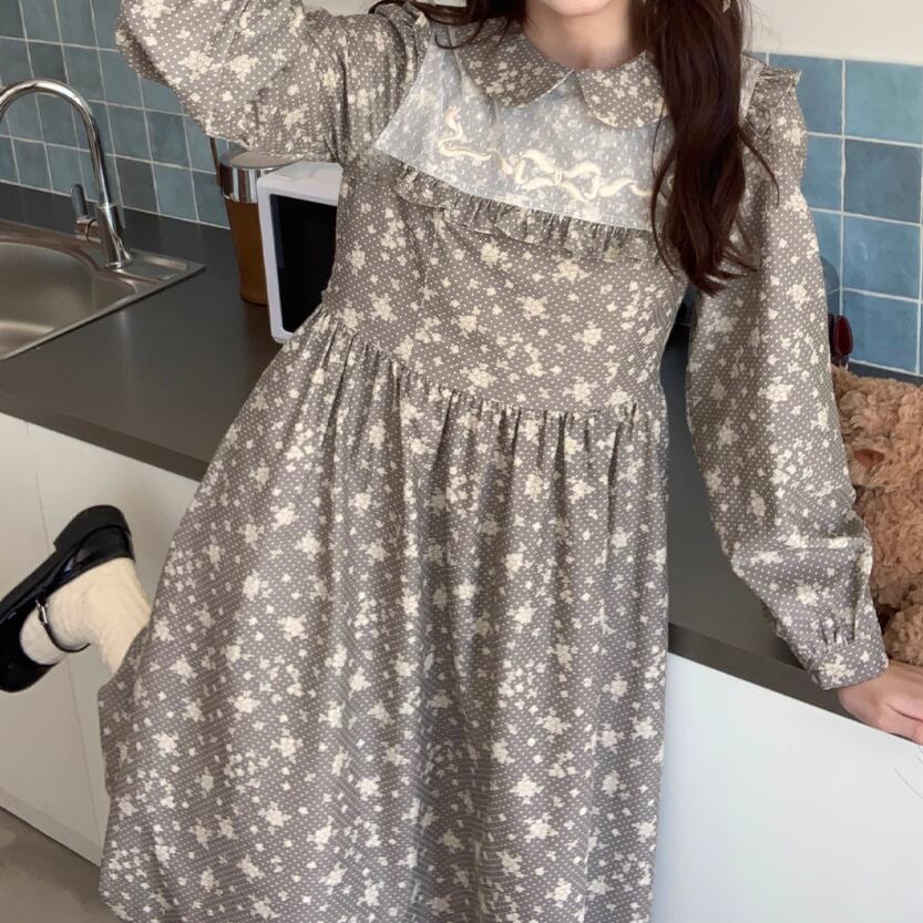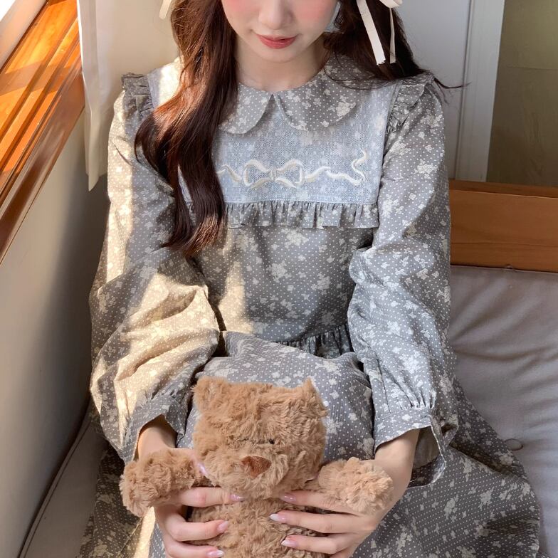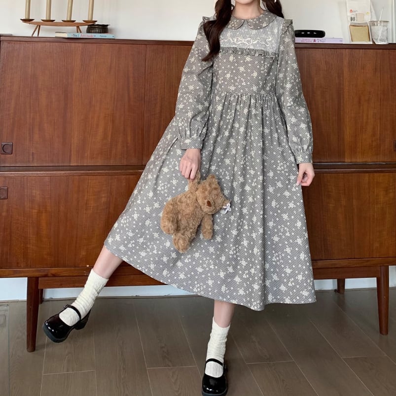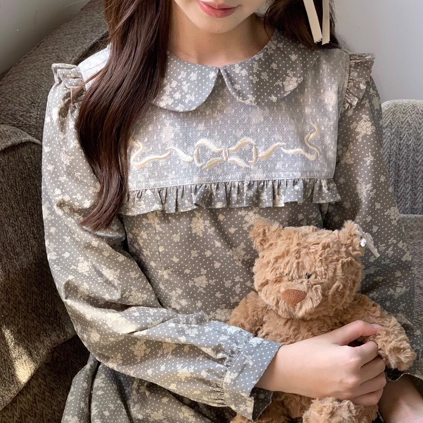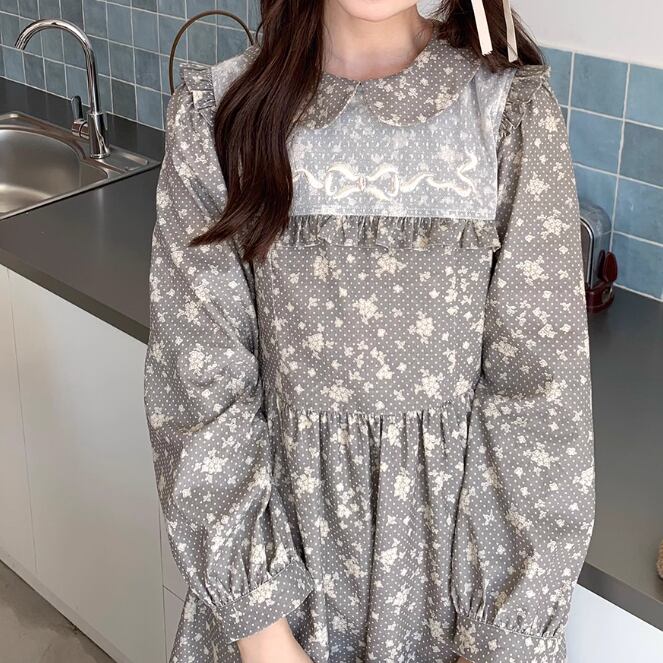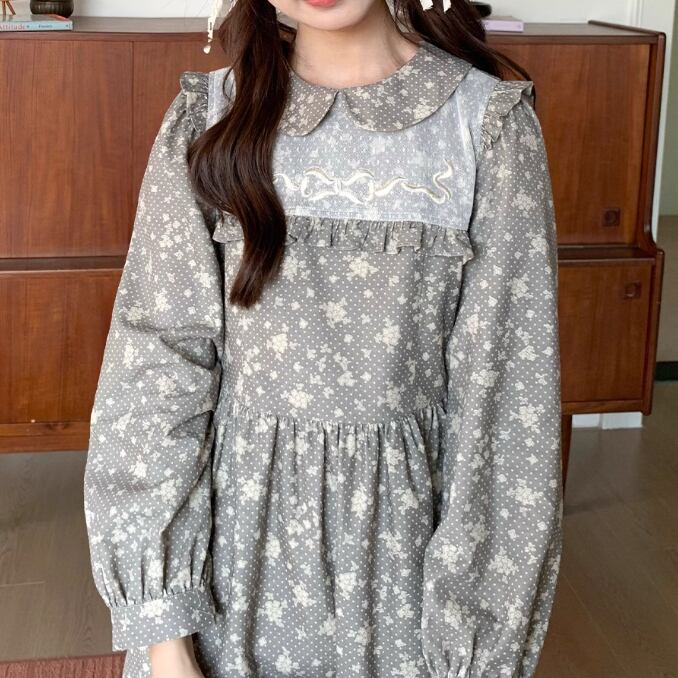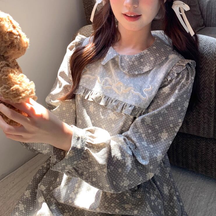 レース貼りコーデュロイロングワンピ ・6410
