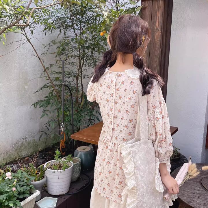 ラウンドネックレトロチェック柄ブラウス ・8142