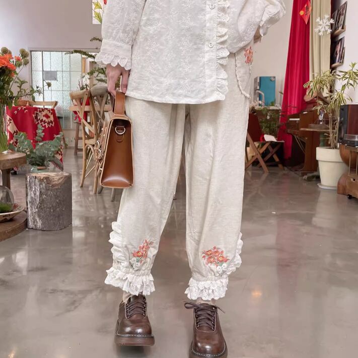 2色/サイドレース貼りコーデュロイパンツ ・8519