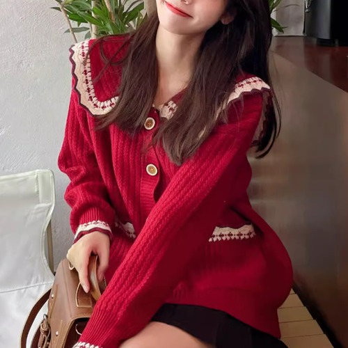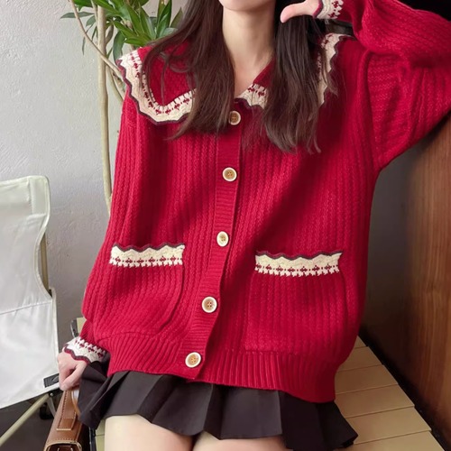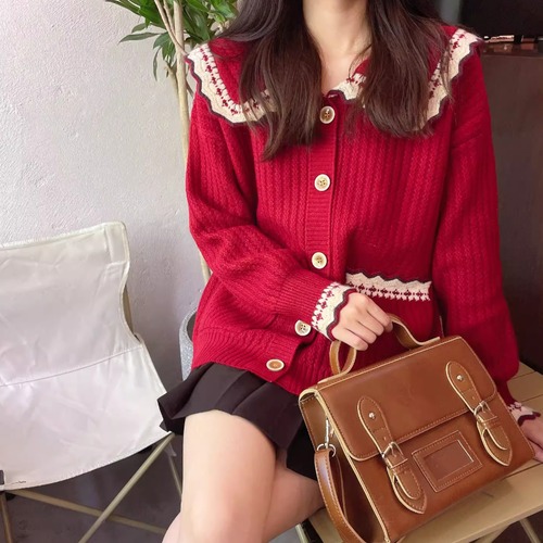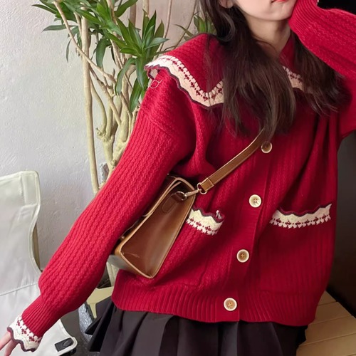 3色/フラワー刺繍ニットカーデ ・8907