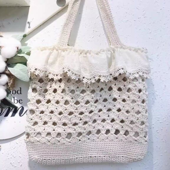 2色/レース貼り透かし編みトートバッグ ・8570