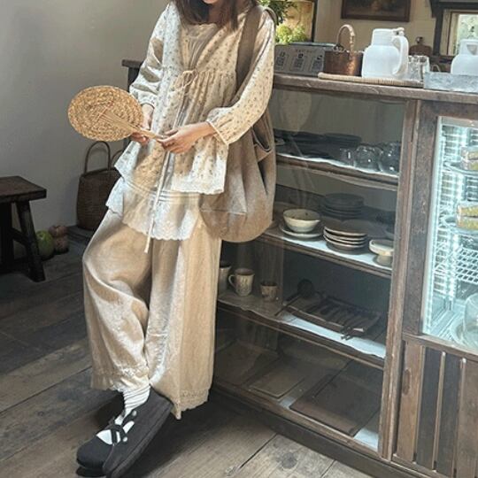 2色/サイドレース貼りコーデュロイパンツ ・8519