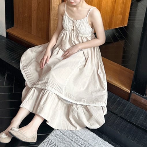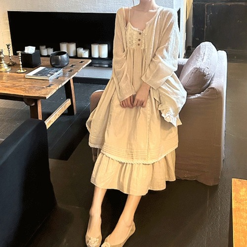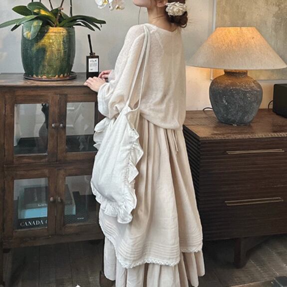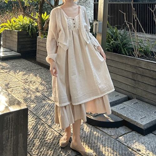 ピンタックVネックリネンジャンスカ ・7269