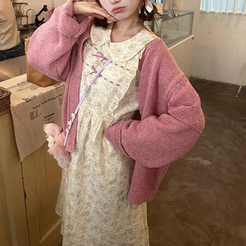 3色/フラワー刺繍ニットカーデ ・8907