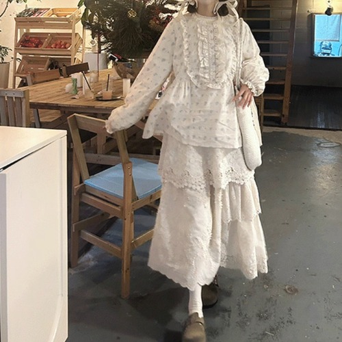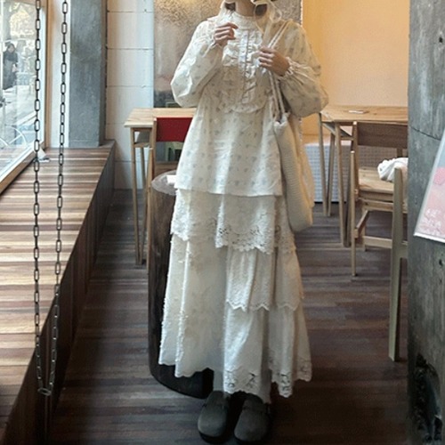 2色/カットワーク刺繍コットンスカート ・9437