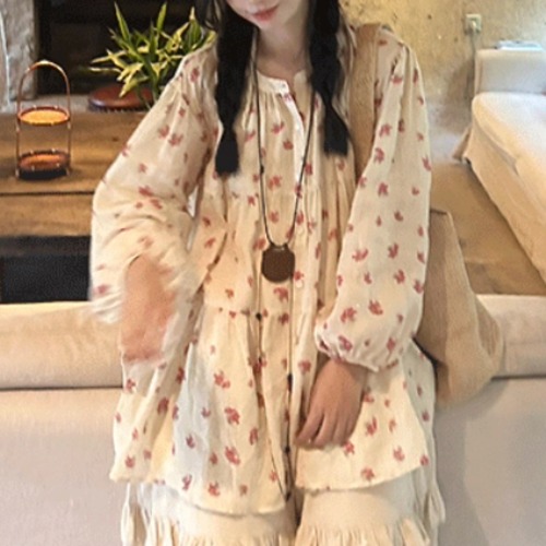 丸ボタンワッフルブラウス ・3622