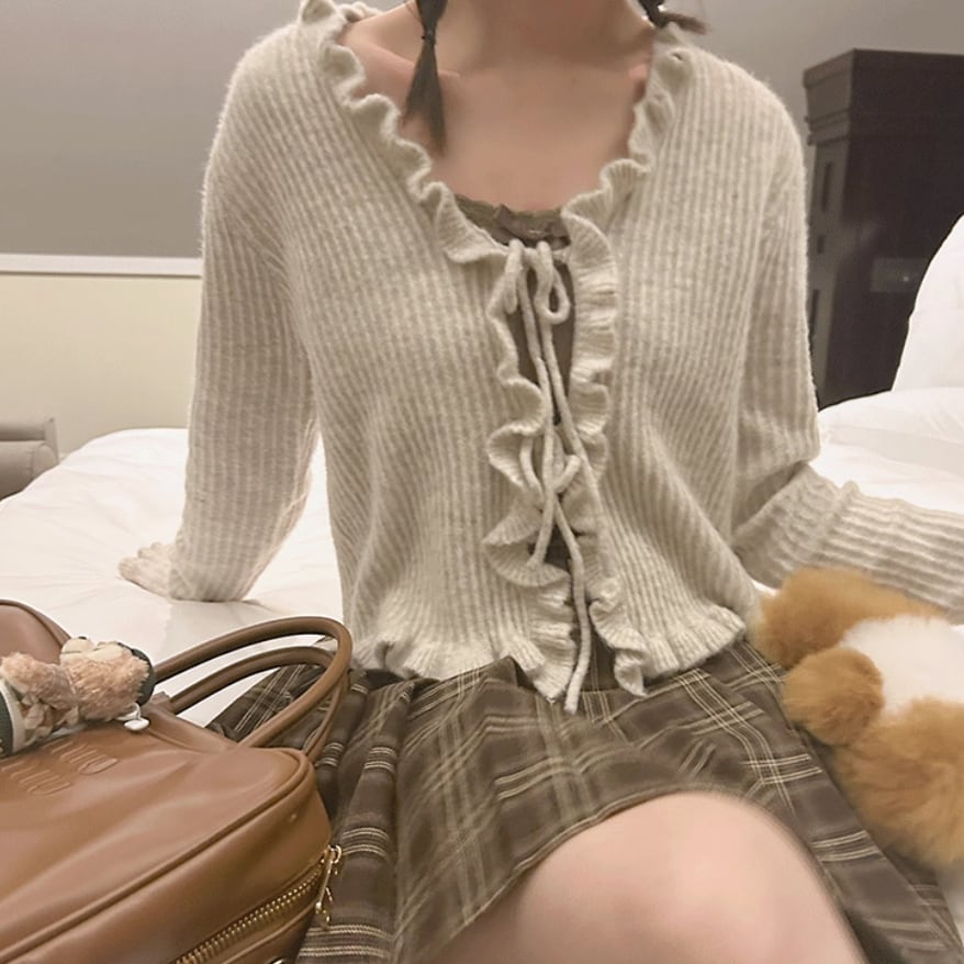 縁スカラップニットカーディガン ・6042