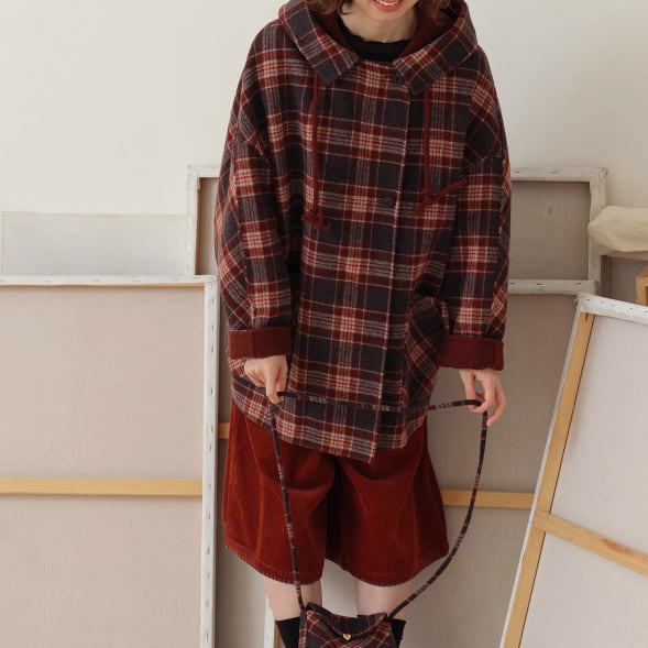 裏地チェック柄トグルボタンコート ・8717