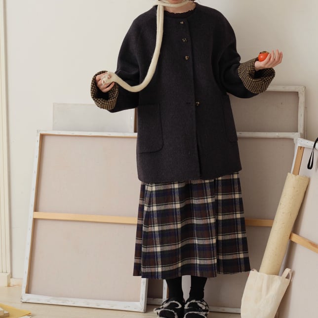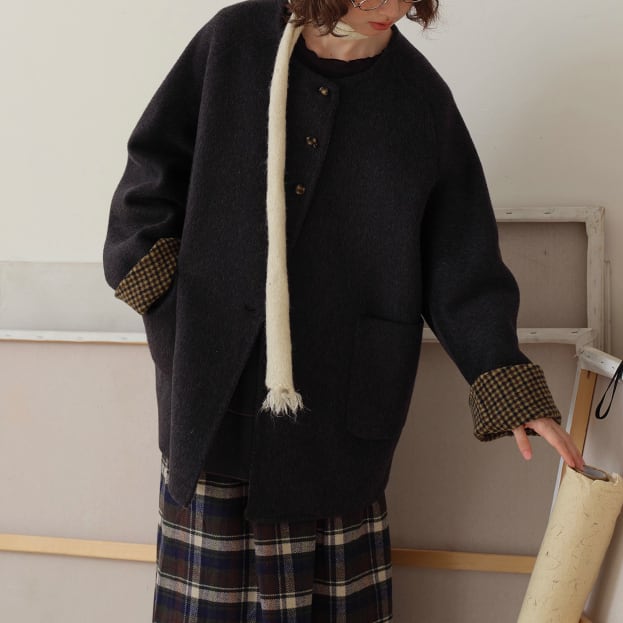 裏地チェック柄トグルボタンコート ・8717