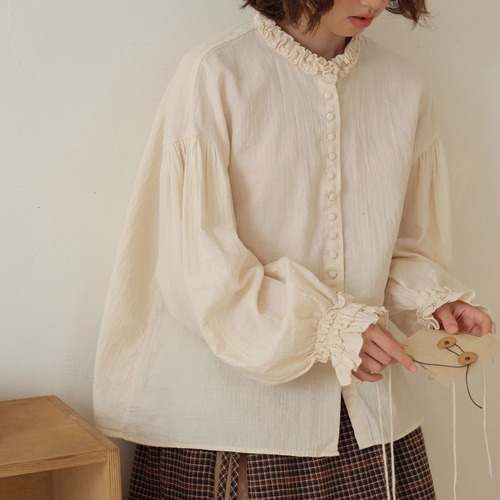 丸ボタンワッフルブラウス ・3622