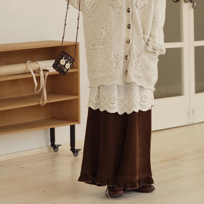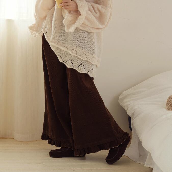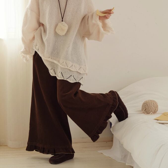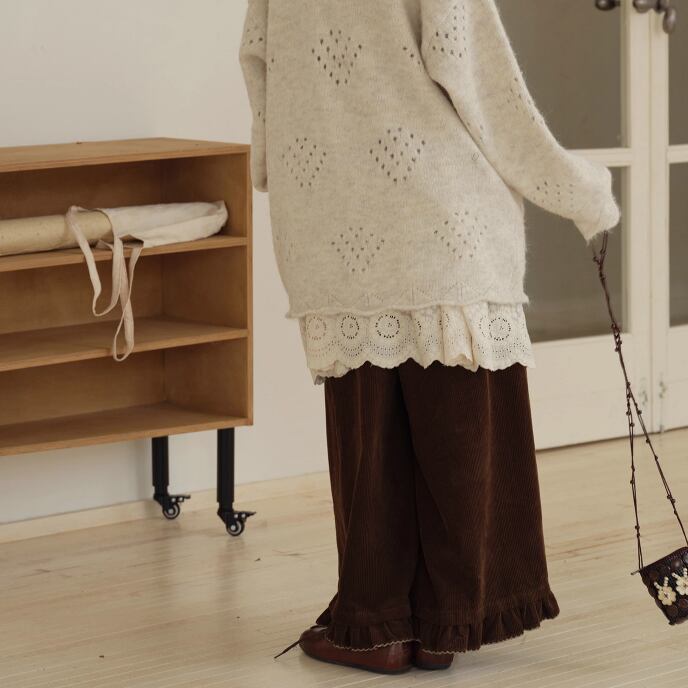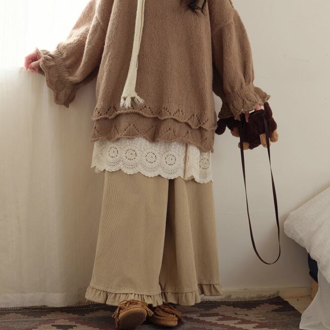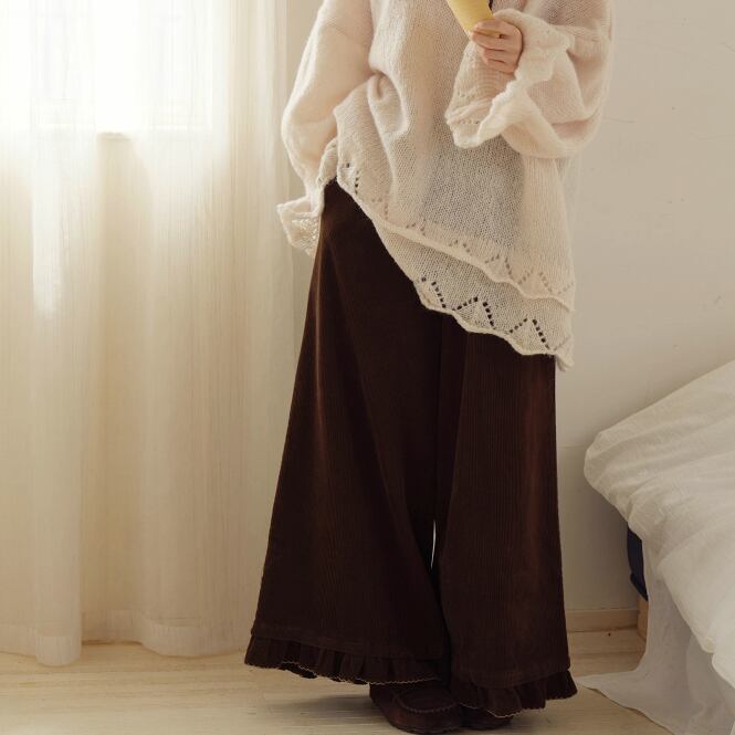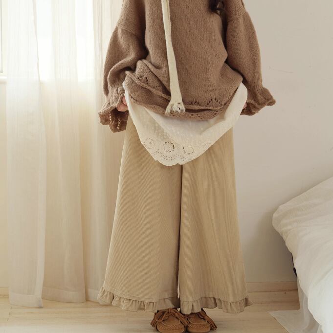 2色/サイドレース貼りコーデュロイパンツ ・8519