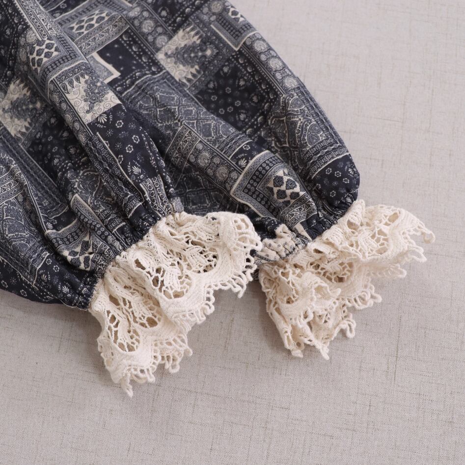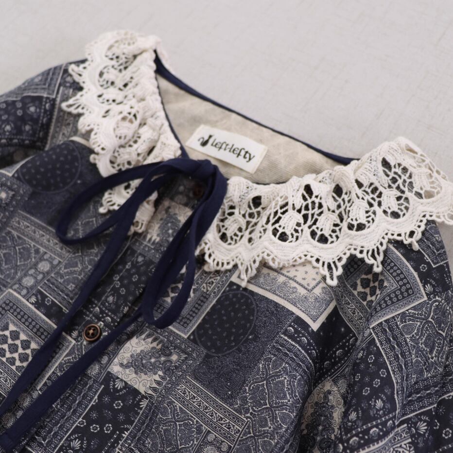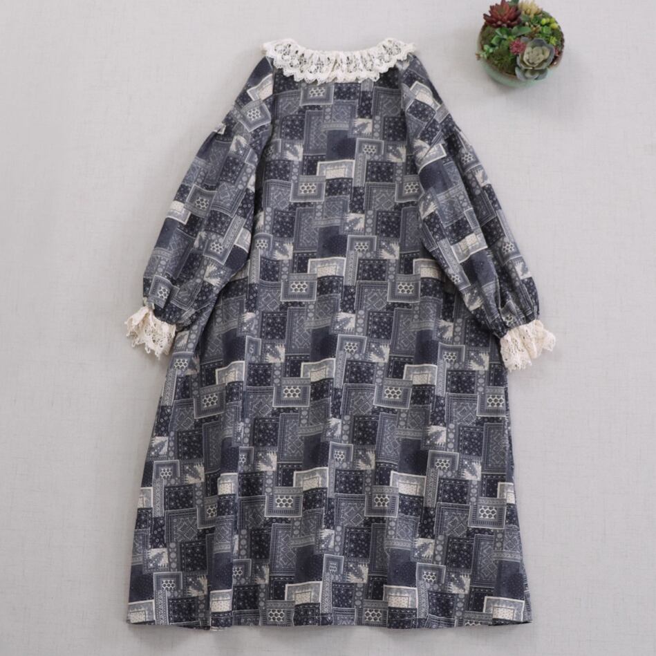 レース貼りコーデュロイロングワンピ ・6410