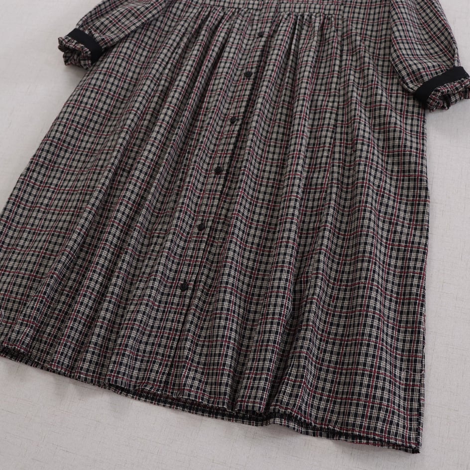 3色/レトロチェック柄シャツロングワンピ ・8186