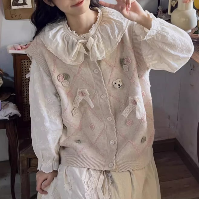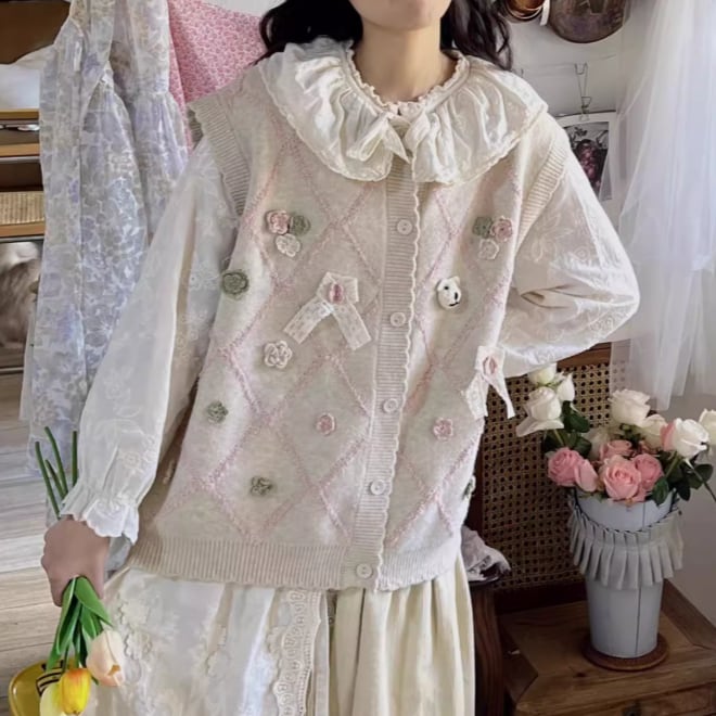 カットワーク刺繍ニットカーディガン ・3834