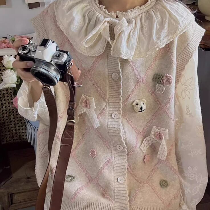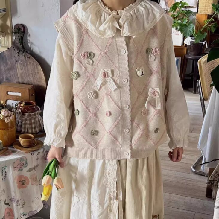 ノーカラーニットベスト ・8346