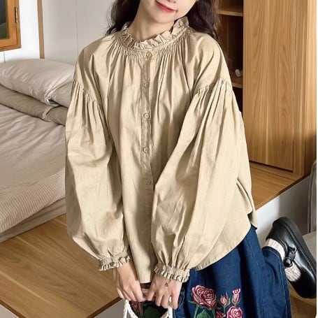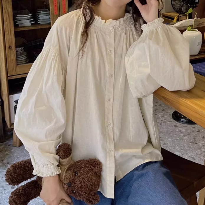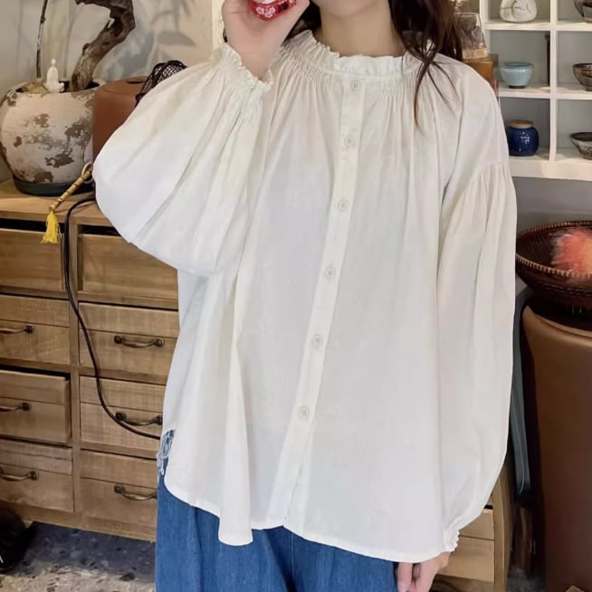 丸ボタンワッフルブラウス ・3622