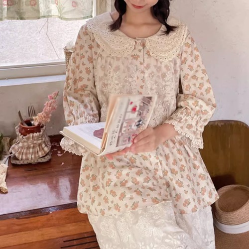 ラウンドネックレトロチェック柄ブラウス ・8142