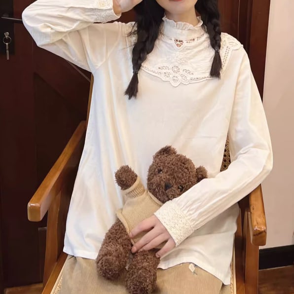 クロシェレースカラーコーデュロイトップス ・6395