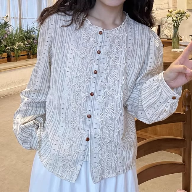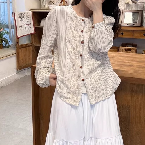 ラウンドネックレトロチェック柄ブラウス ・8142