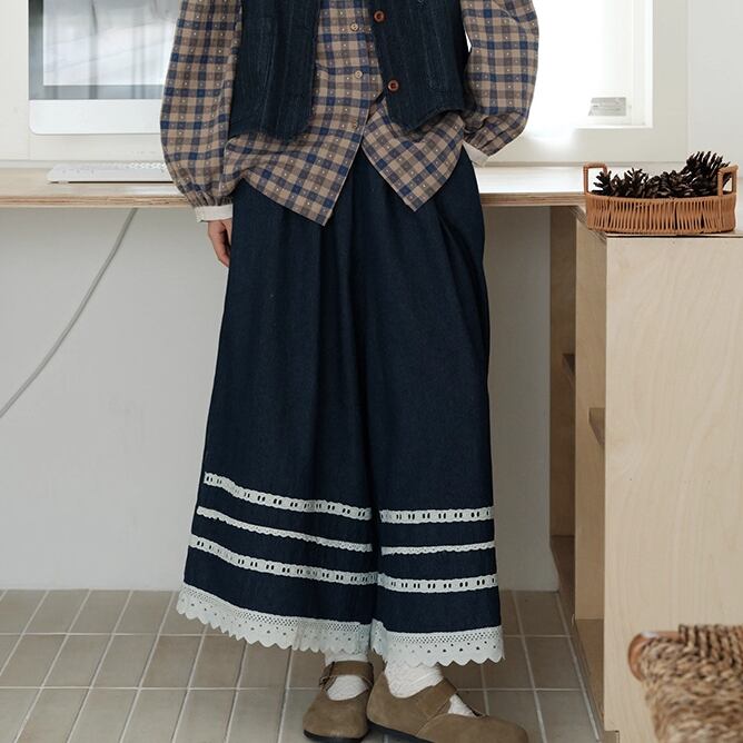2色/サイドレース貼りコーデュロイパンツ ・8519
