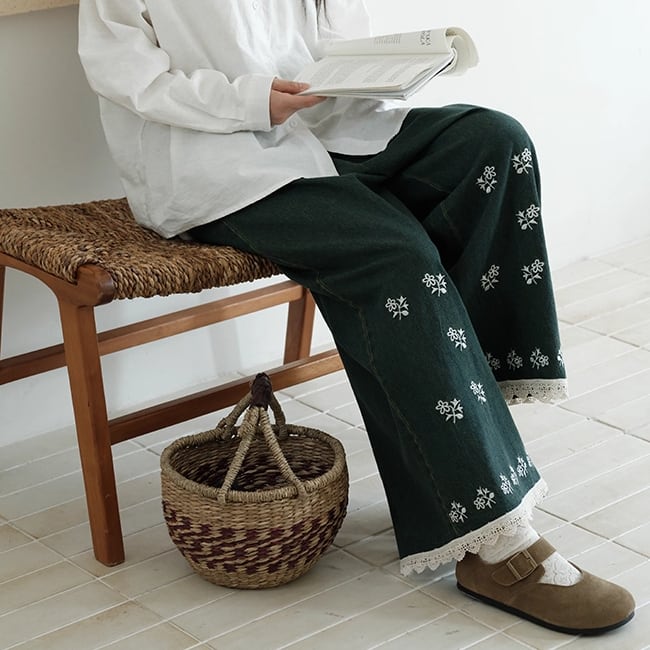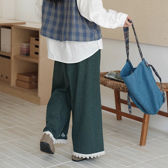 2色/サイドレース貼りコーデュロイパンツ ・8519