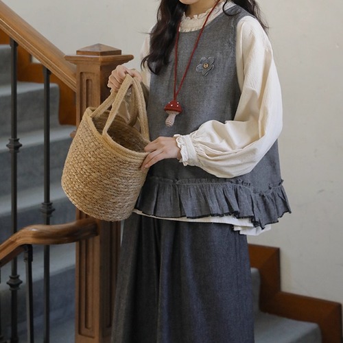 ノーカラーニットベスト ・8346