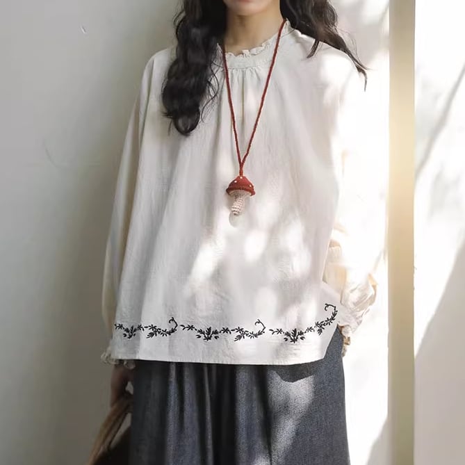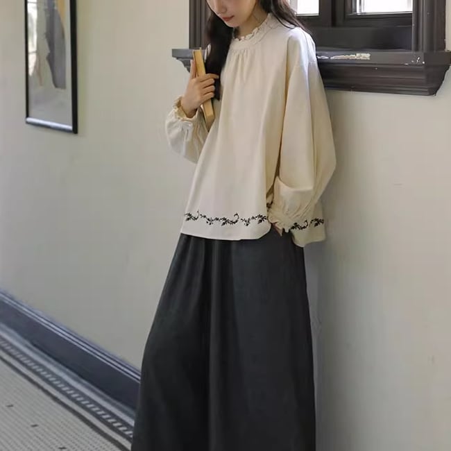 ラウンドネックレトロチェック柄ブラウス ・8142
