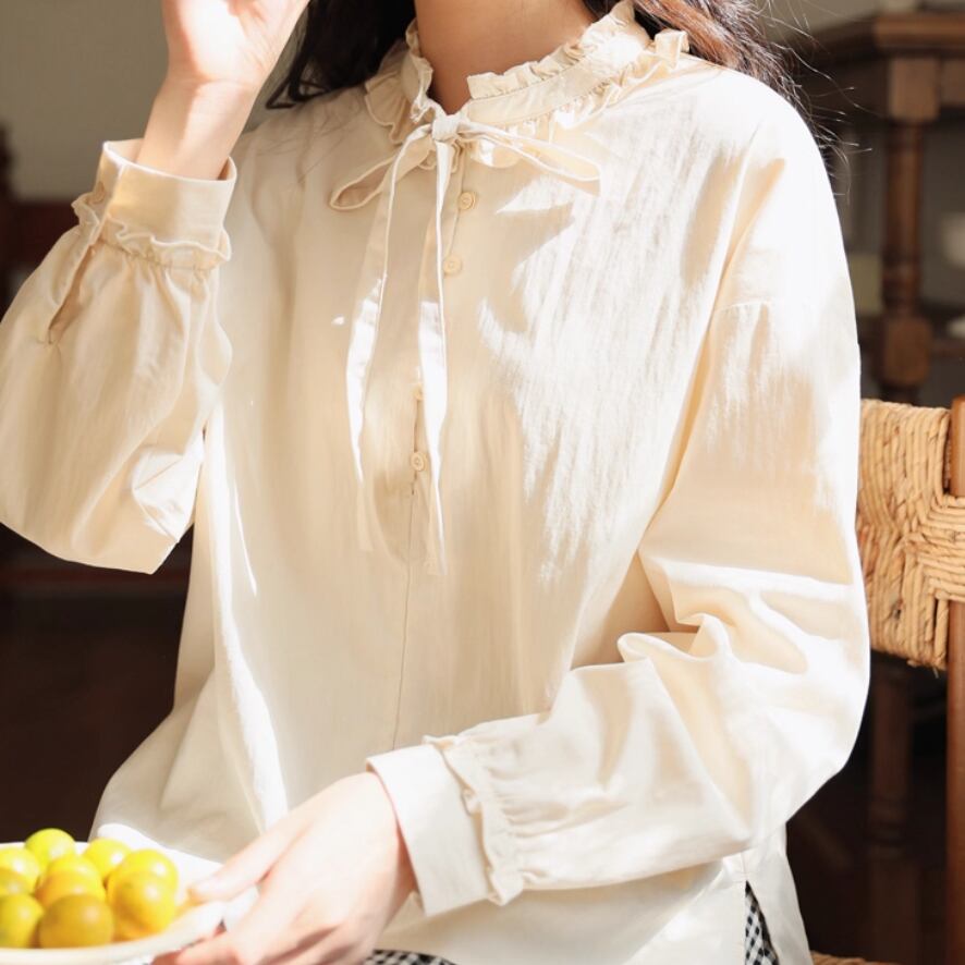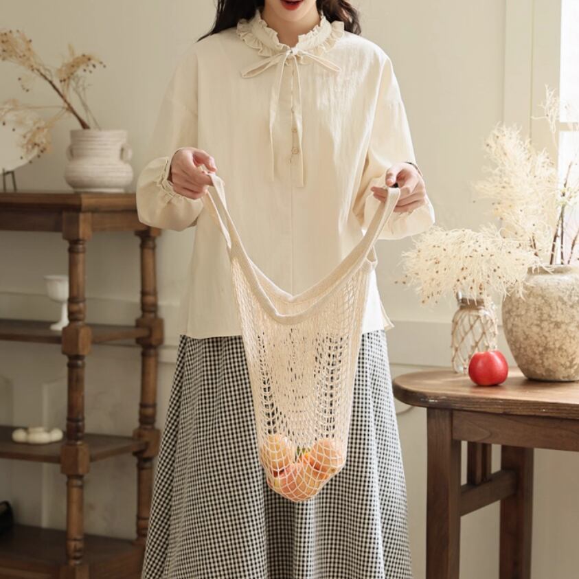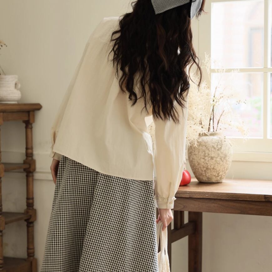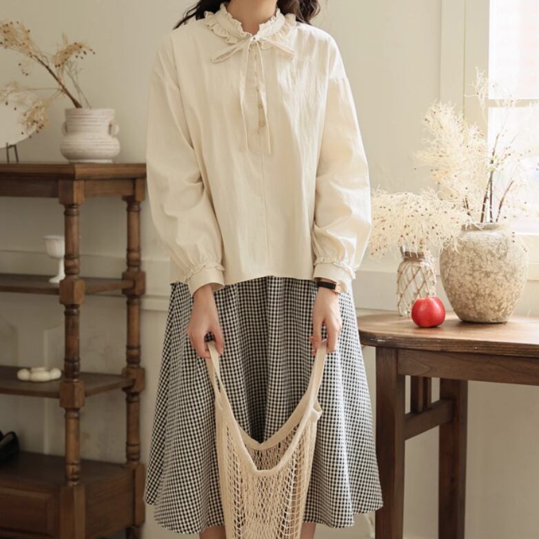 ラウンドネックレトロチェック柄ブラウス ・8142
