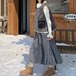 裾レースチェック柄フレアスカート ・9292
