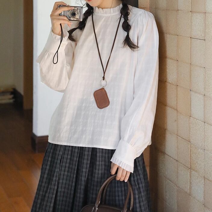 ラウンドネックレトロチェック柄ブラウス ・8142
