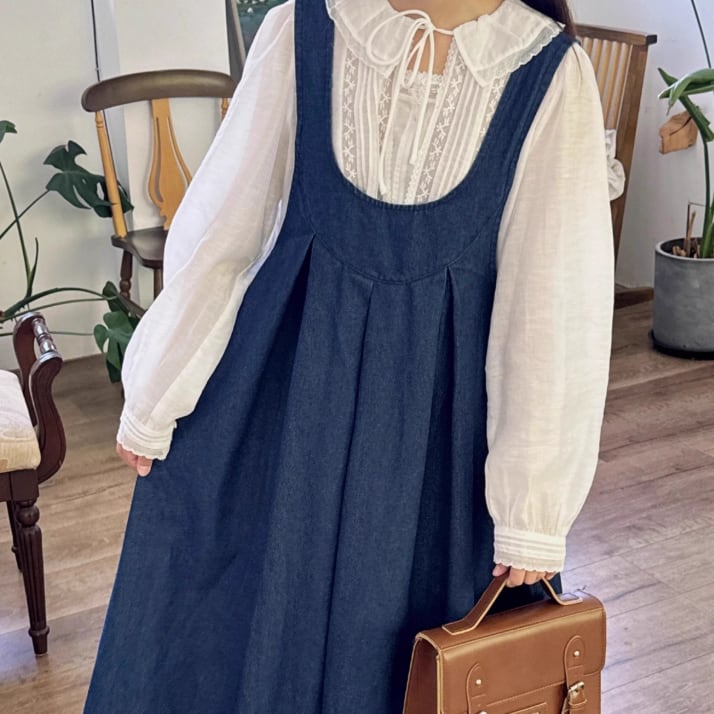ピンタックVネックリネンジャンスカ ・7269