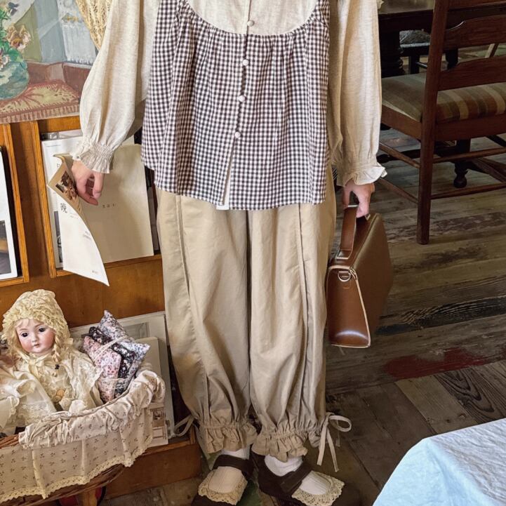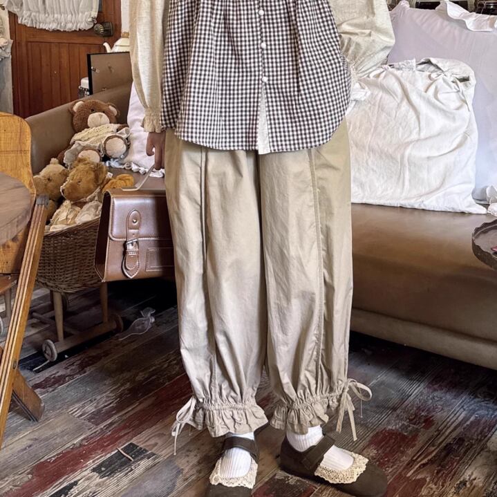 裾フリルワイドパンツ ・7886