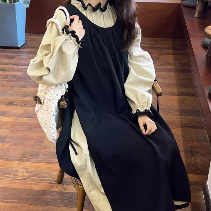 【2点セット】2色/ベスト+バルーンスカート ・9352