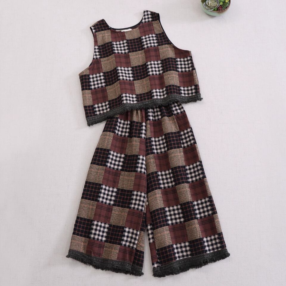 【3点セット】レトロベスト+トップス+フレアスカート ・9351