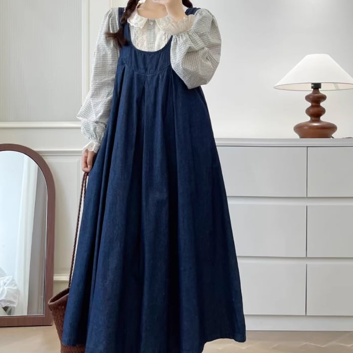ピンタックVネックリネンジャンスカ ・7269