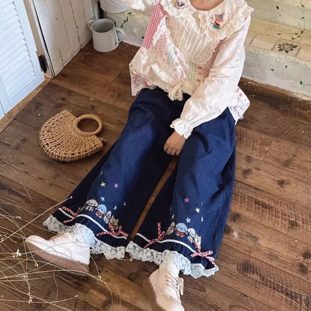 2種/レース貼りコーデュロイパンツ ・8552