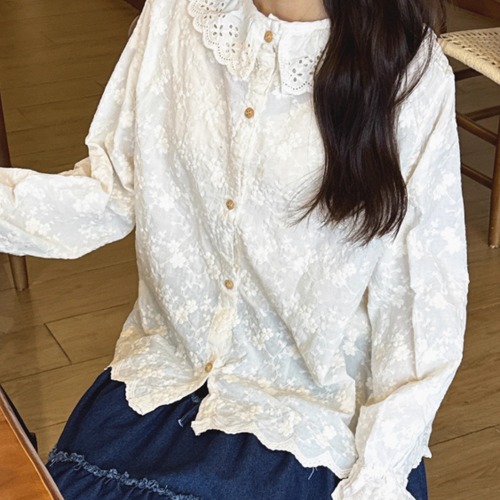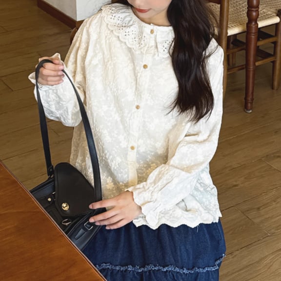 ラウンドネックレトロチェック柄ブラウス ・8142