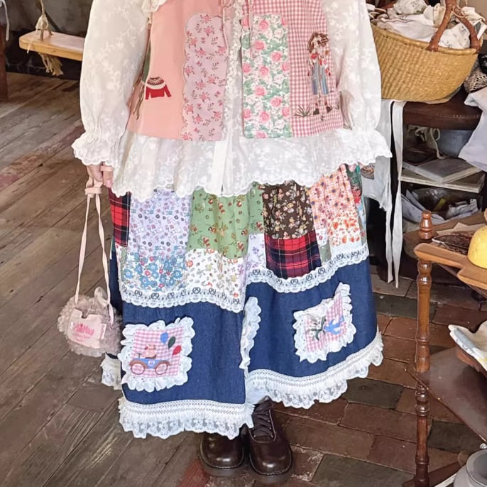 3色/裾レースレトロフレアスカート ・8942