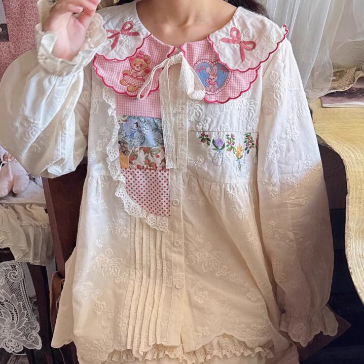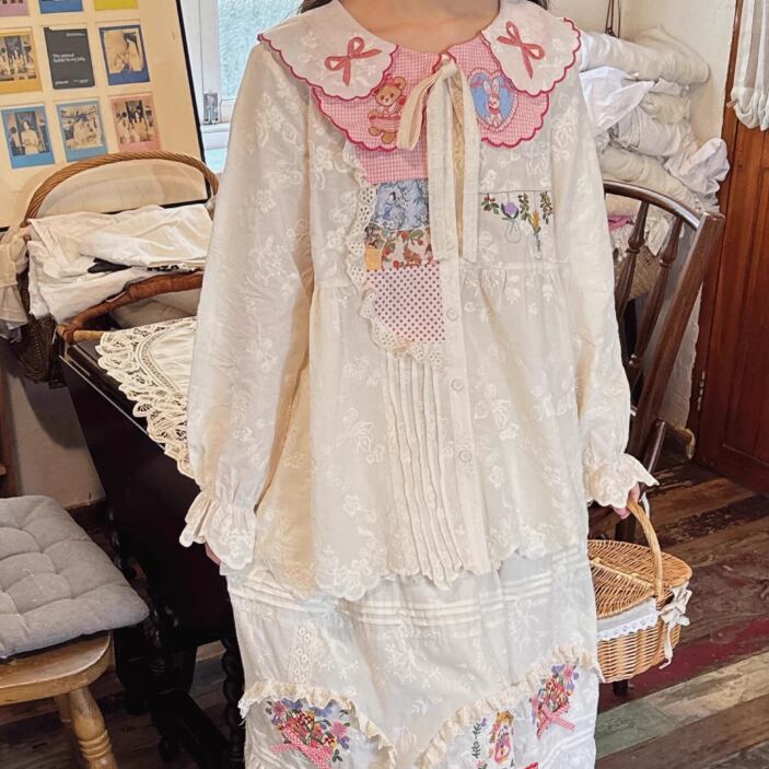 ラウンドネックレトロチェック柄ブラウス ・8142